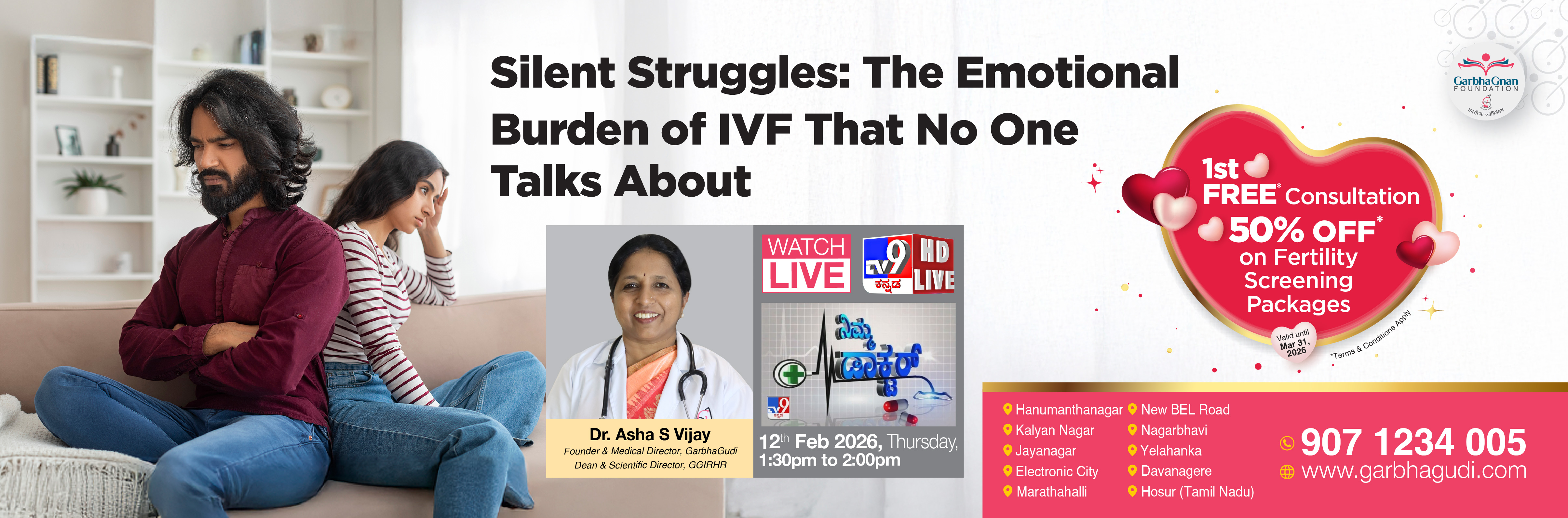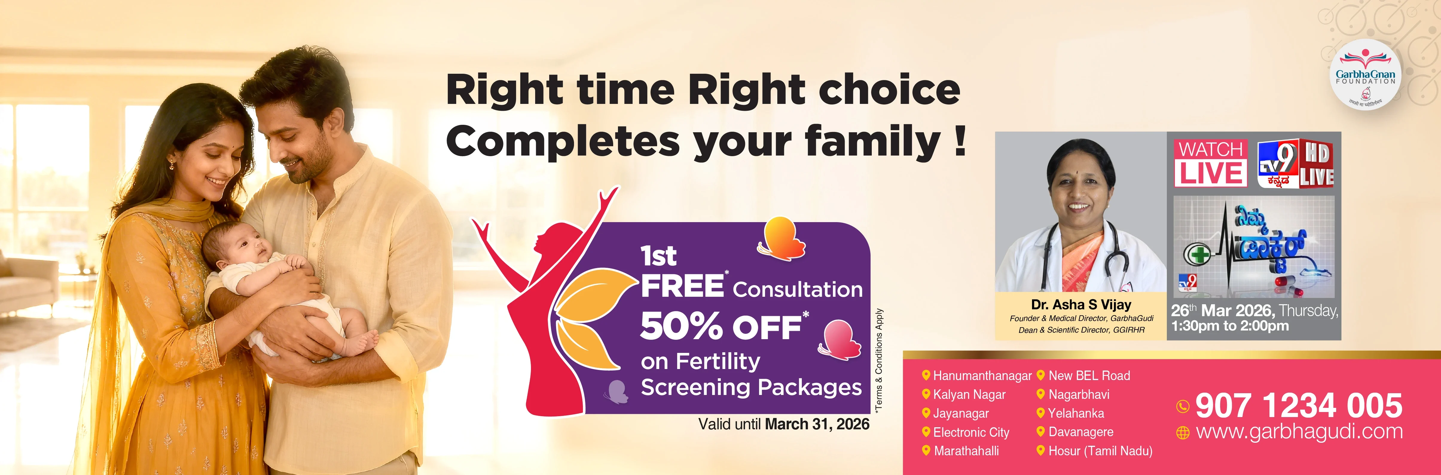 GarbhaGudi is a chain of new generation infertility treatment hospitals equipped with state-of-the-art infrastructure and cutting-edge technology to address this ever-increasing infertility problem. It was founded by a team of committed entrepreneurs and healthcare specialists, led by Dr. Asha S Vijay, a renowned gynaecologist and fertility specialist.
